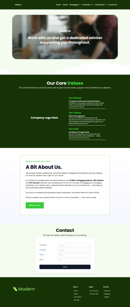 A warm, lifestyle-driven layout that feels personal and relatable. Designed for advisers wanting a modern, friendly aesthetic that connects clearly with today’s homeowners and growing families.